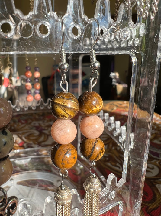 Tigerโs Eye & Sunstone Crystal Drop Earrings