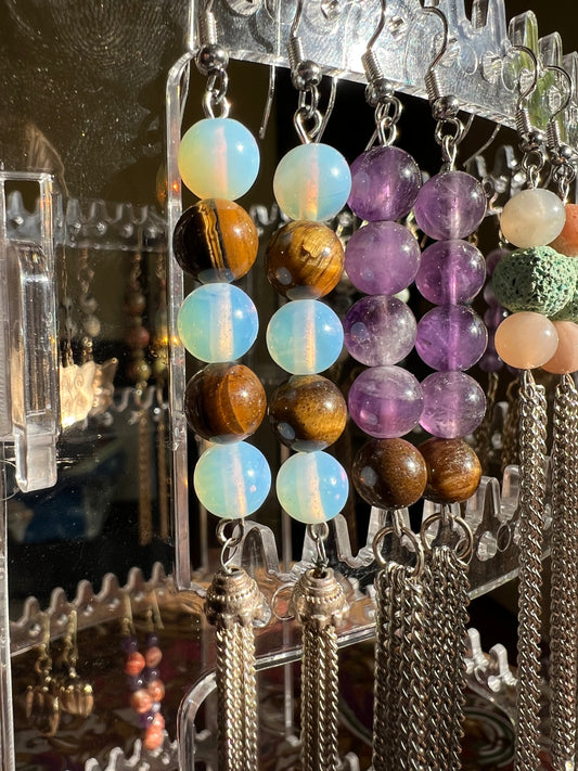 Opal & Tigerโs Eye Crystal Dangle Earrings
