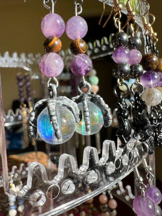 Tigerโs Eye & Amethyst Crystal Claw Earrings