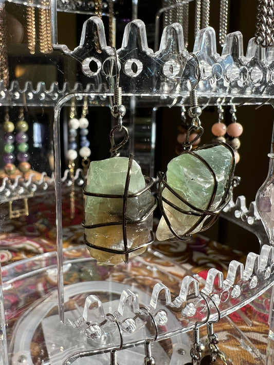Green Calcite Crystal wire wrapped Earrings