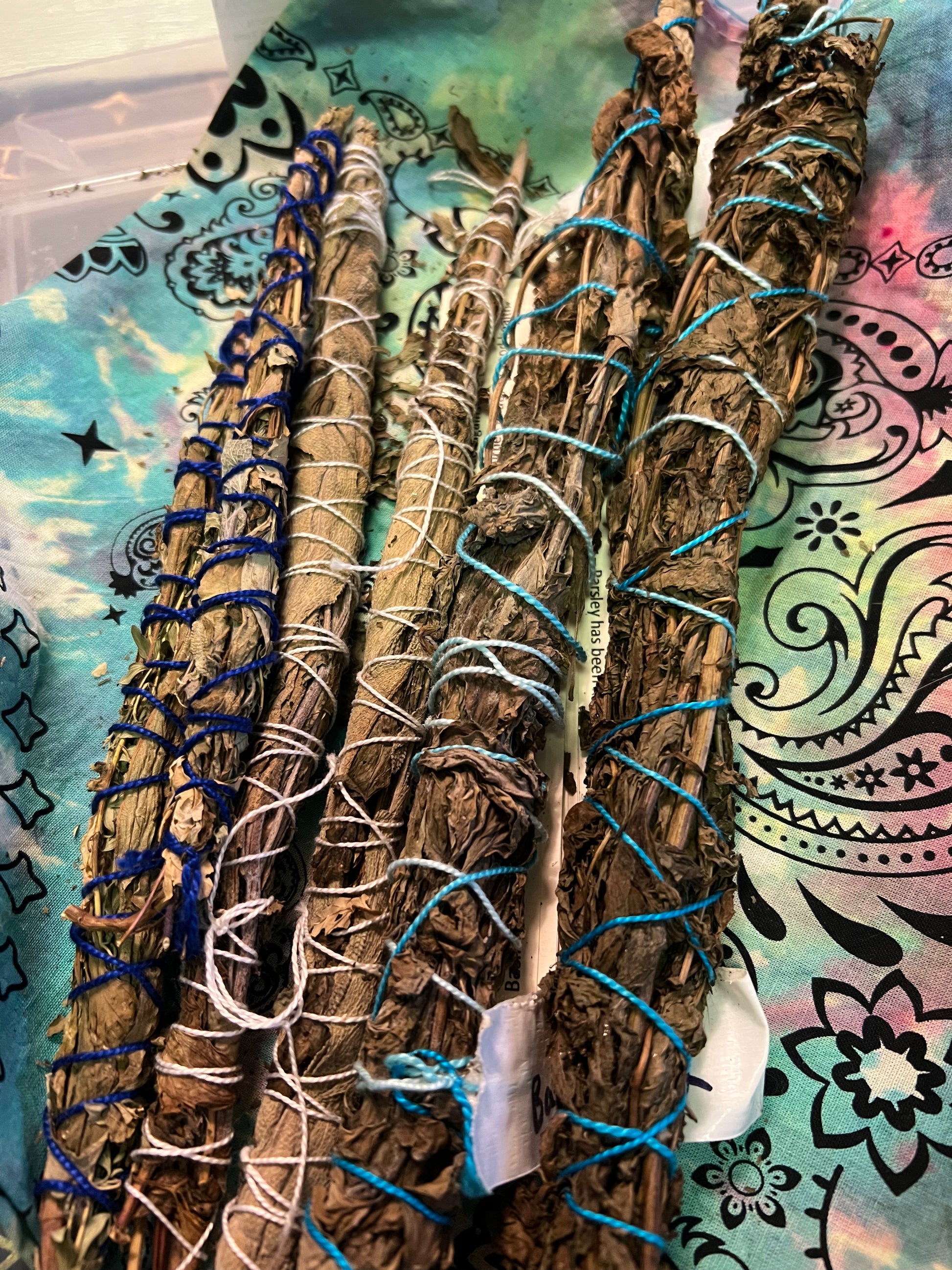 Bring natural magic into your space with these homegrown, hand-harvested, and hand-wrapped herbal smoke cleansing wands. Perfect for energetic cleansing, intention-setting rituals, or simply as beautiful, earthy decor.