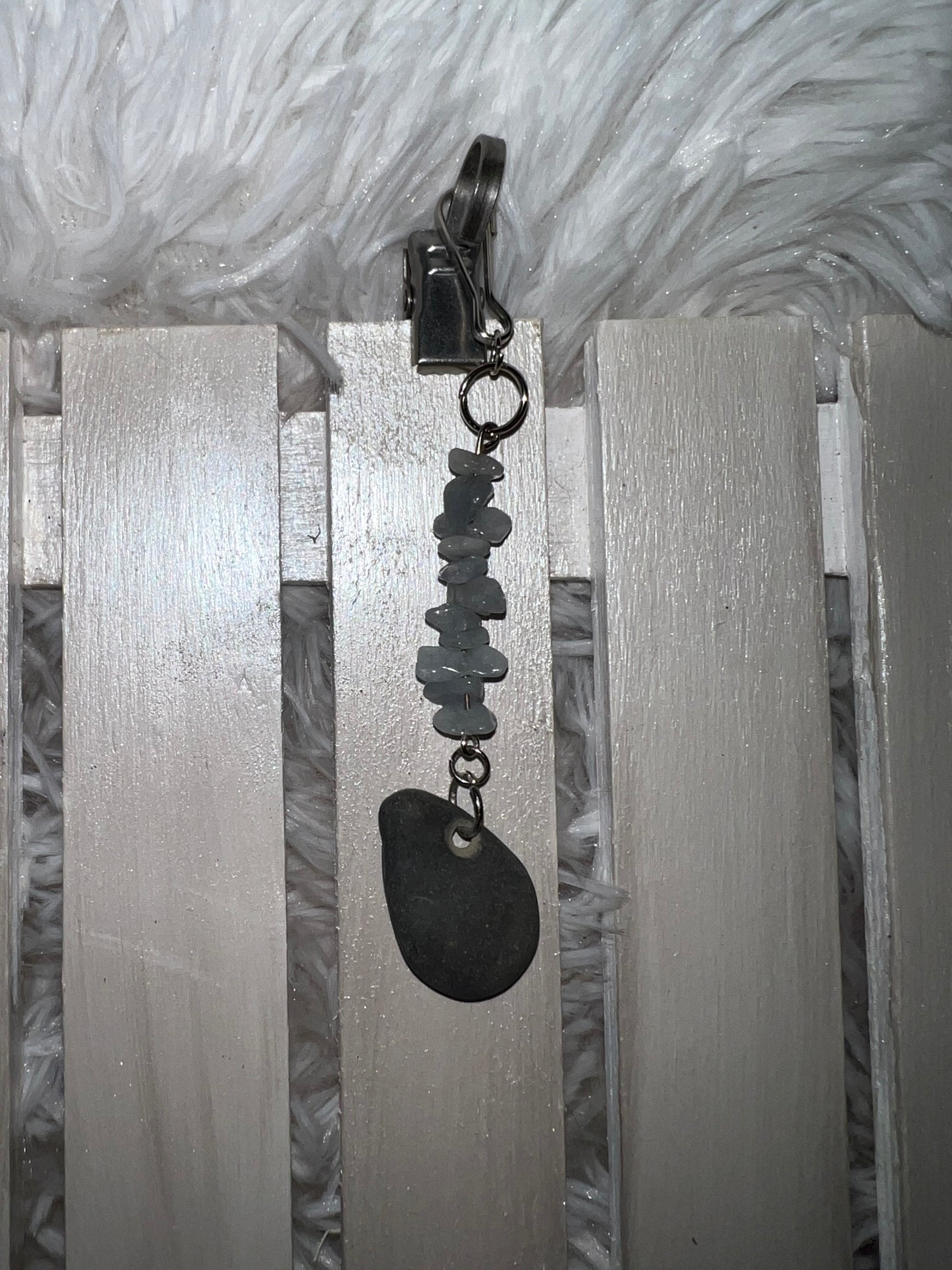 Aquamarine Crystal Lucky stone Hag stone Keyring