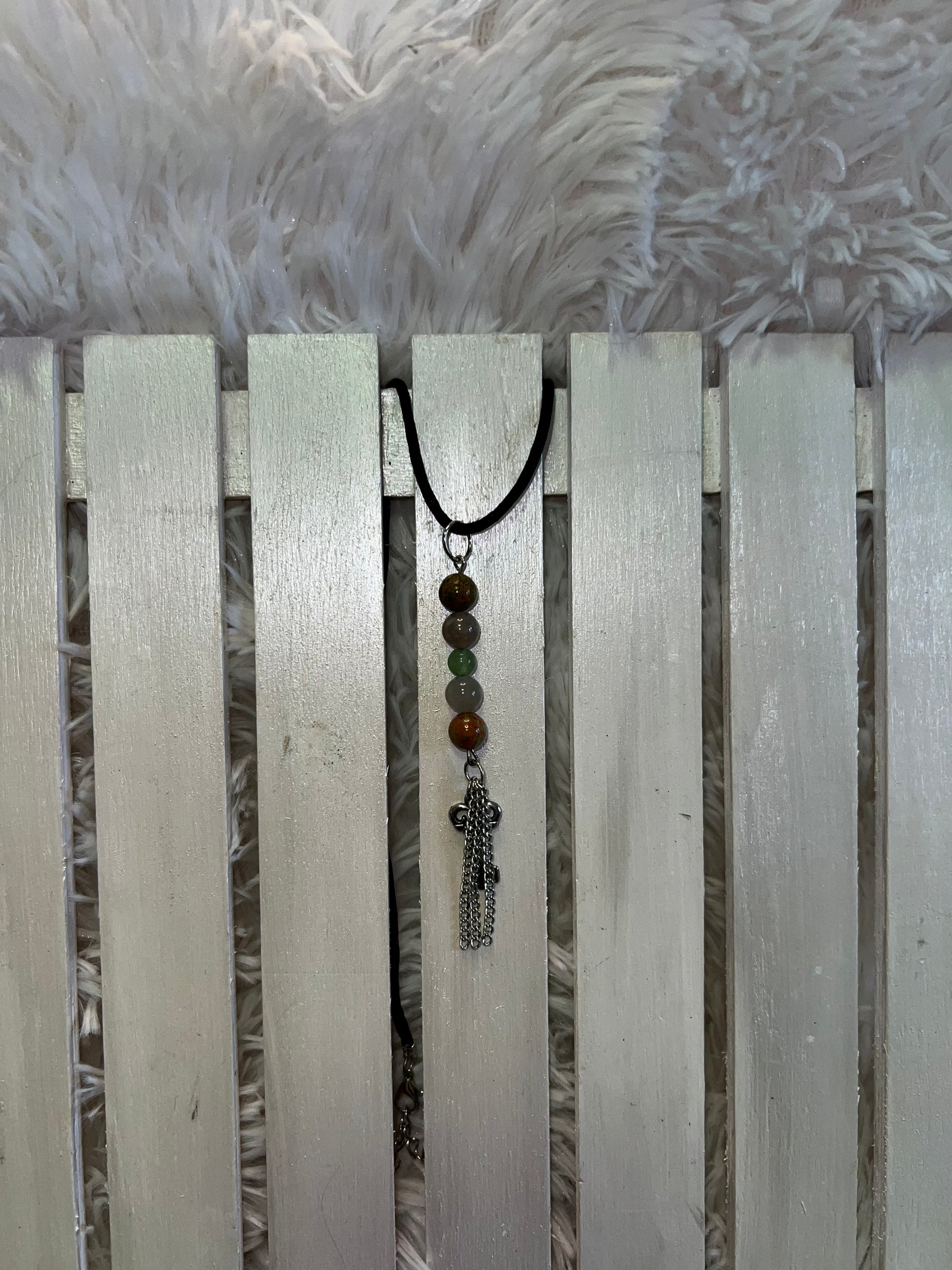 Mixed Crystal Bead Necklace w/ Chain Details & Silver Key — Unakite, Green Aventurine & Jasper | Cord Chain