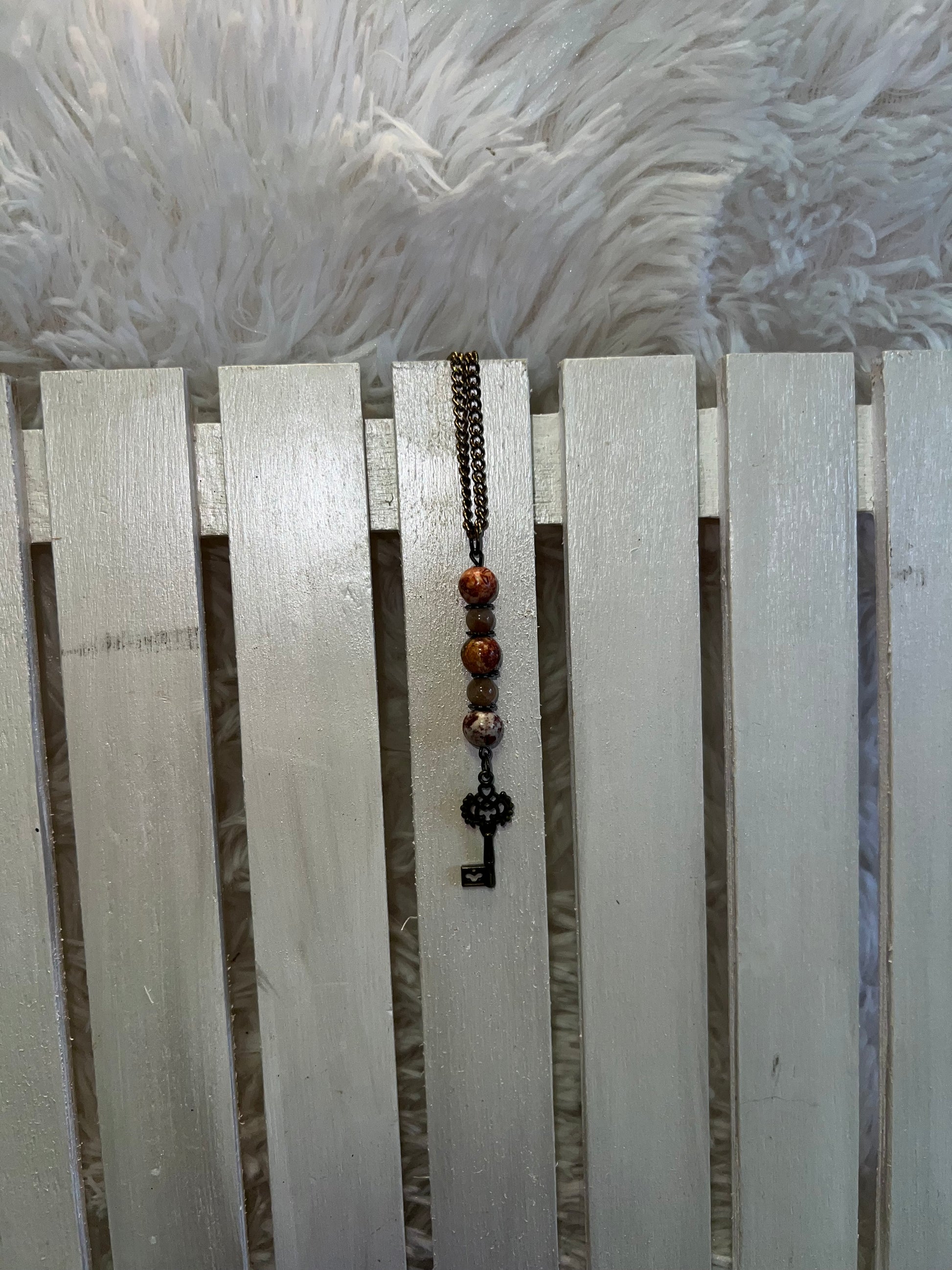 Jasper & Sunstone Crystal Necklace w/ Vintage Gold Key — Vintage Gold Findings